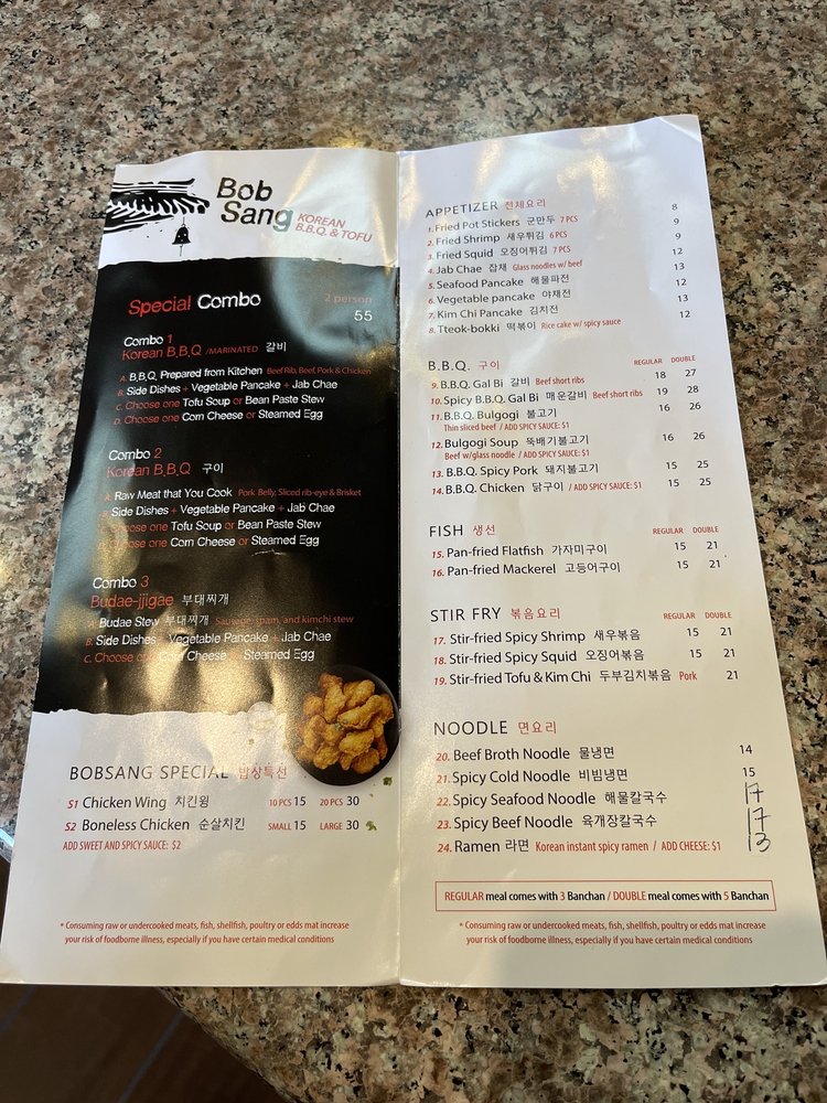 Bob Sang Korean BBQ & Tofu is a well-rounded dining experience located in Fremont, CA. They offer a variety of pescatarian and vegetarian options, making it inclusive for all diners. The extensive menu includes classic Korean dishes like Galbi and Bulgogi, as well as unique finds like Tteokbokki and sweet and sour chicken. The restaurant boasts a clean and stylish interior, providing a comfortable ambiance for guests. Customers rave about the friendly service and the homemade taste of the food, with some even mentioning it reminding them of home-cooked meals. The lunch specials are particularly popular, offering a great value with a variety of dishes to choose from. If you're looking for authentic Korean cuisine with a personal touch, Bob Sang Korean BBQ & Tofu is the place to visit.